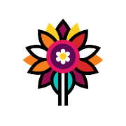 Das Logo des Blumenladens zeigt eine schematische Blume mit einem langen Stängel. Die Blume ist in verschiedenen Farben gehalten.